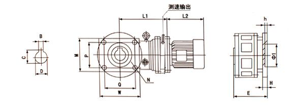 型號(hào) 電機(jī)功率 減速比 安裝方式 測(cè)速方式 處軸孔徑 安裝方向