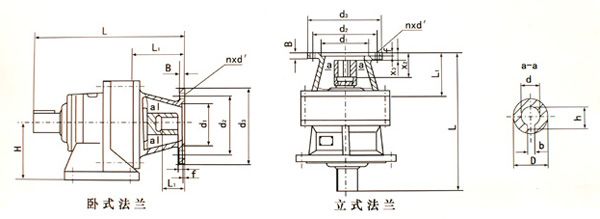 | 尺寸系列 機(jī)型號 | 電動機(jī) 功率KW | 電動機(jī) 機(jī)座號 | L | L1 | H | B | f | d1(公差) | d2 | d3 | d(公差) | D | h | b | nxd | |||